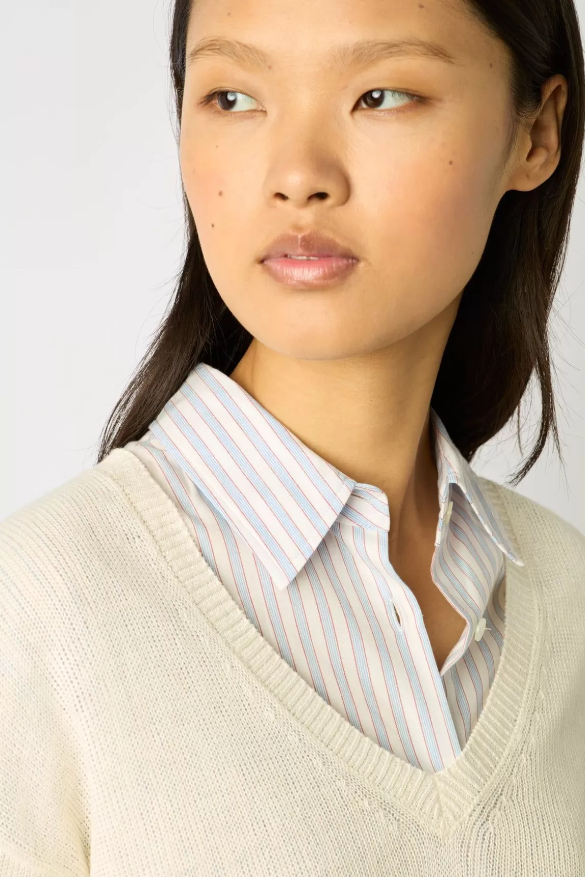Pull V En 100% Lin. Coloris Écru Pour Un Porter Chic Au Quotidien.