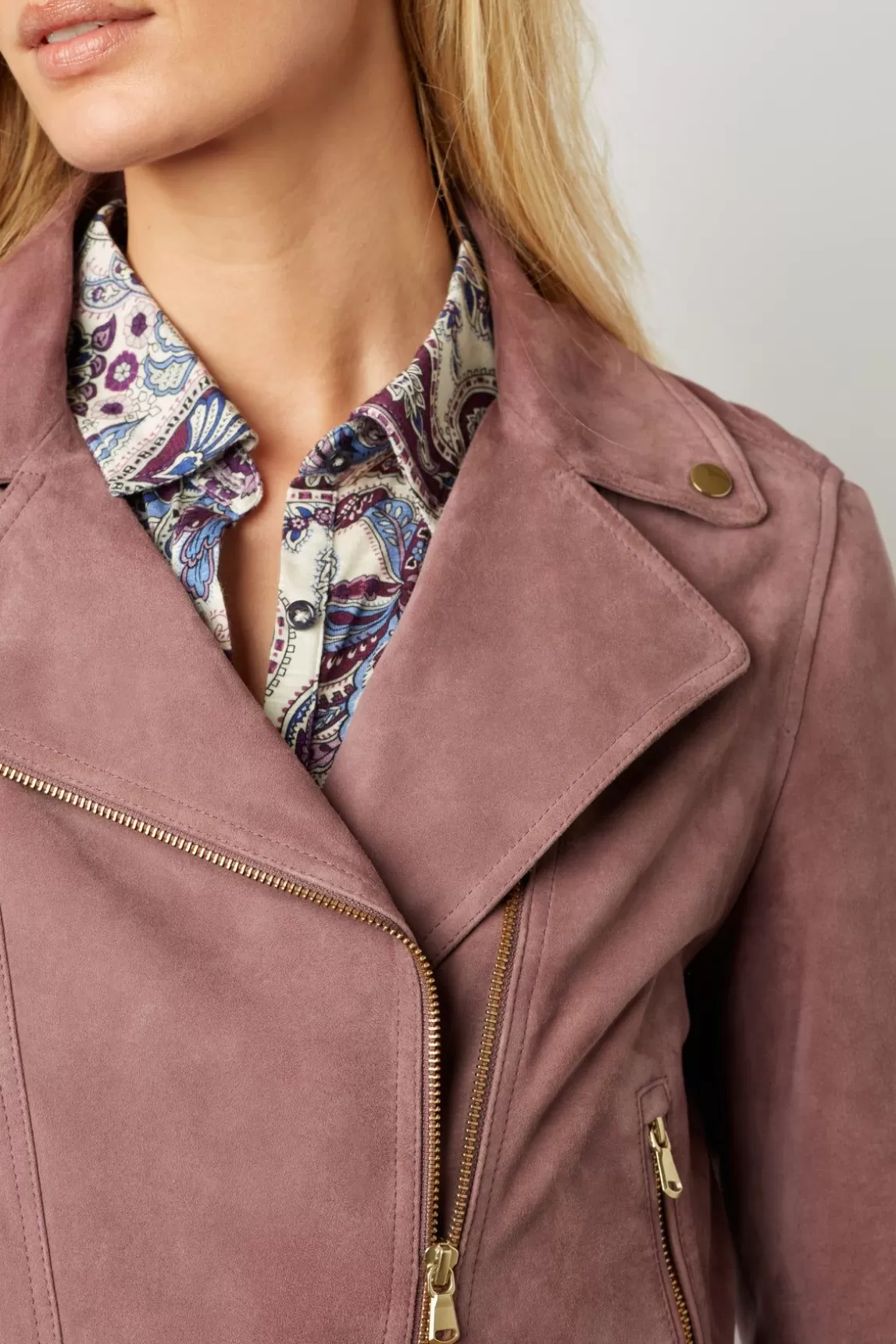 Veste Biker Dans Un Esprit Rock Chic. Cuir Velours Souple Et Doux.